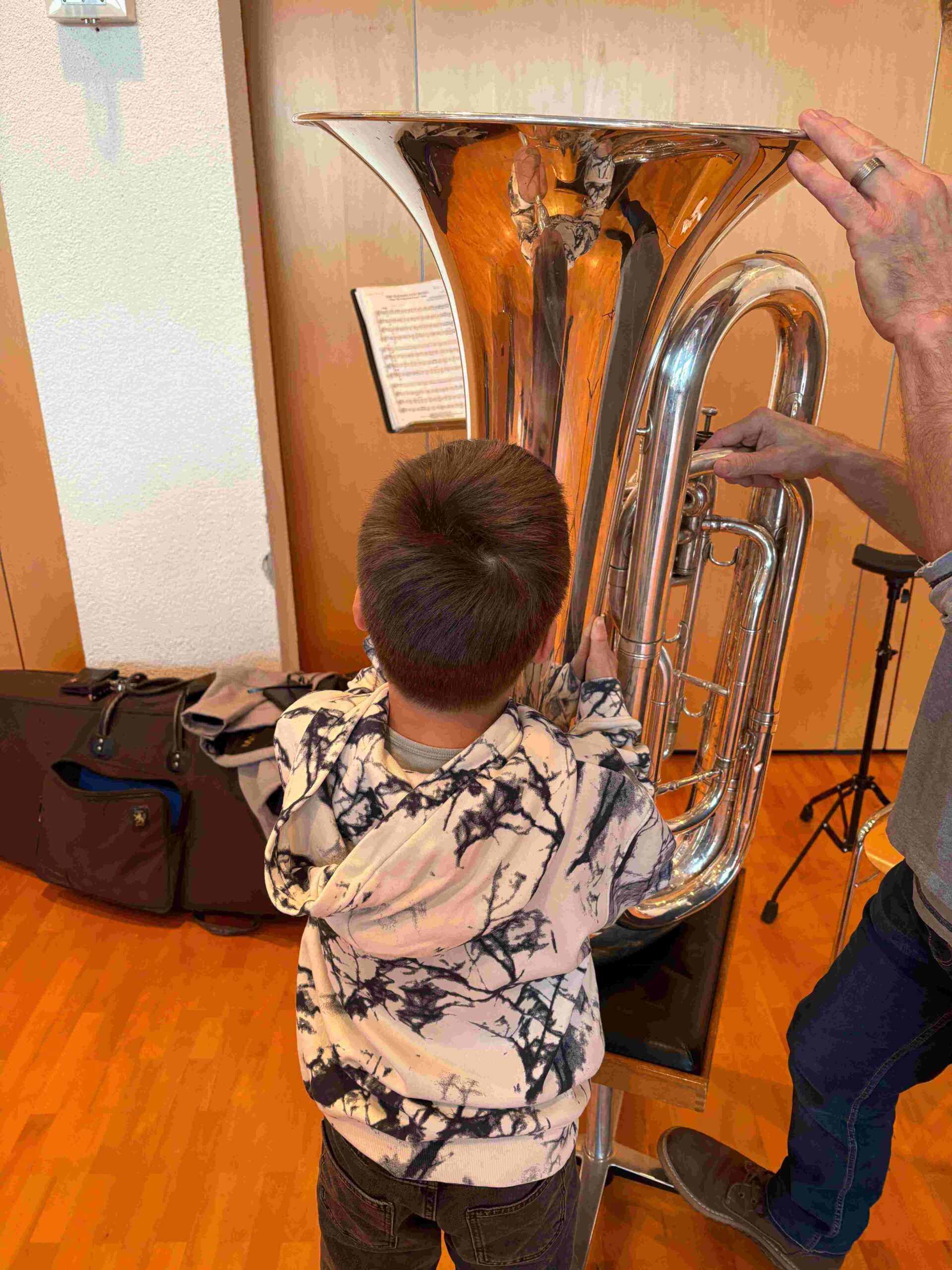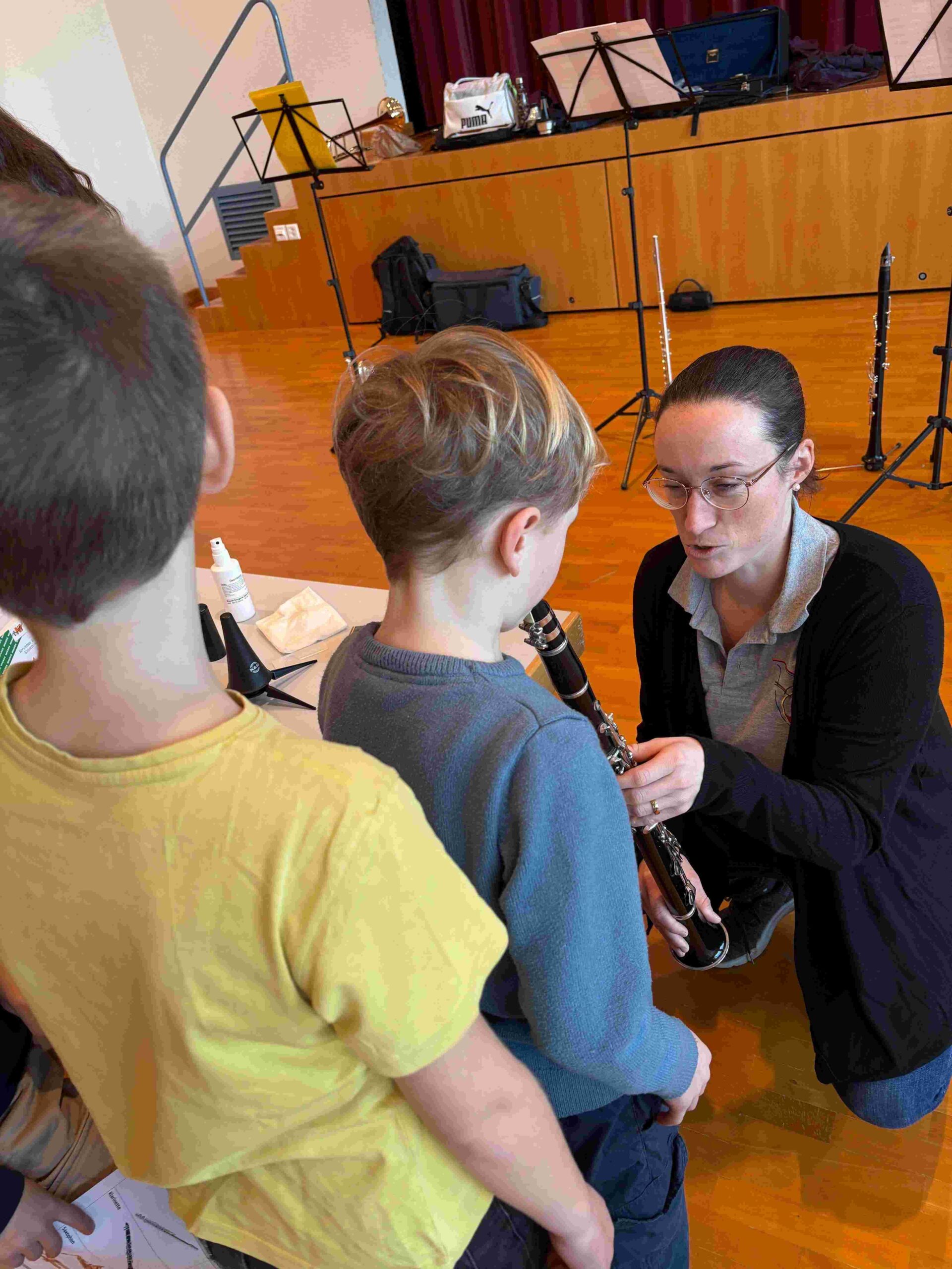 Mit grosser Neugier und sichtbarer Begeisterung wurden Instrumente wie Querflöte, Klarinette, Saxophon, Fagott, Trompete, Posaune, Waldhorn und Tuba getestet. Ziel war es, die Freude an der Musik zu wecken und die musikalische Erziehung der Kinder zu fördern.