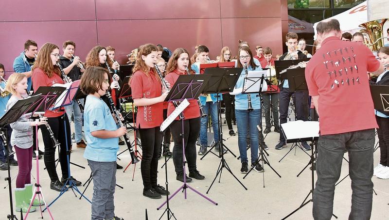 Und dann begrüssten die Musikantinnen und Musikanten die Zuhörenden mit dem Stück «Moskau». Während knapp einer Stunde kamen die Passanten vor dem Eingang zum Einkaufscenter in den Genuss von Blasmusikklängen. Über 50 motivierte Jugendliche gaben ihr Bestes und ernteten demzufolge grossen Applaus. Danach ging die Tour für die jungen Musikanten und ihren Dirigenten auf ihren Fahrrädern weiter – in Richtung Gams, zu ihrem nächsten Auftritt.
